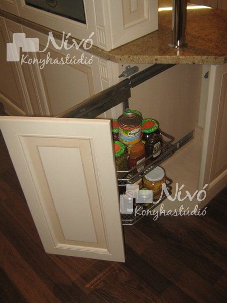 A modern vasalatoknak köszönhetően a Hermon konyhabútor család minden tekintetben megfelel egy modern család elvárásainak. A tökéletesen kihúzható és áttekinthető konyhafiókokat saját igényeink szerint kialakítható betétek osztják kisebb rekeszekre, beépíthető konyhagépeket pedig szekrényajtók mögé rejthetjük.
