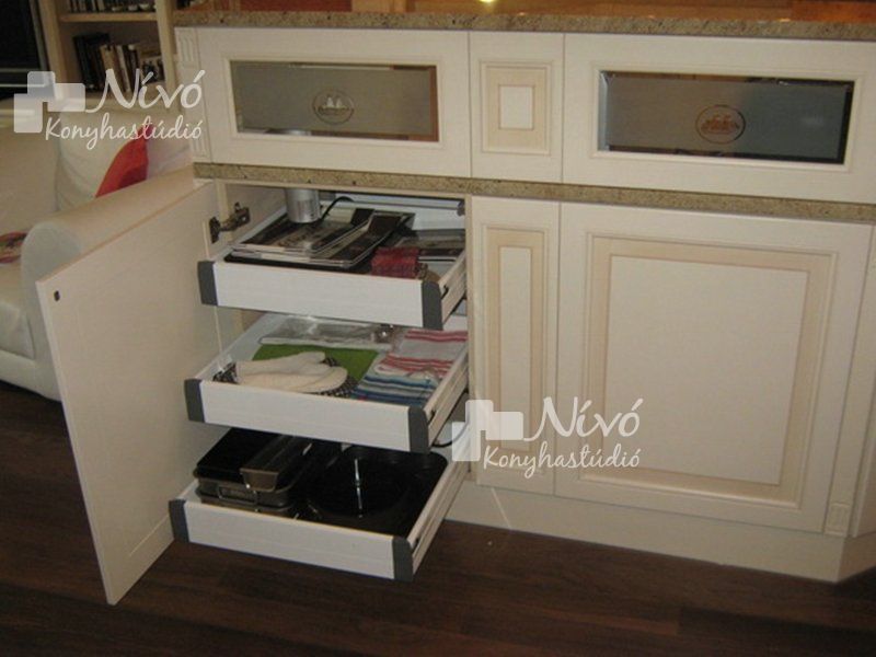 A klasszikus konyhabútor megoldások: a tálalópult, a térbe nyúló konyhasziget, vagy a tálalószekrény egy ráérősebb, nyugodtabb életstílus kellékei, a békebeli hangulatot idéző külső azonban a ma kihívásainak megfelelő belső kialakításokat takar.