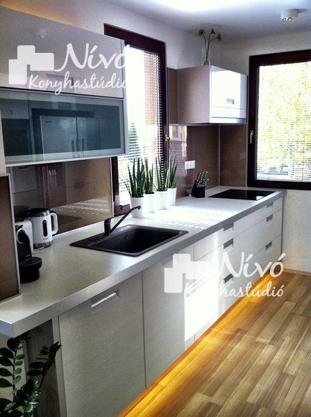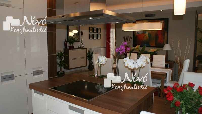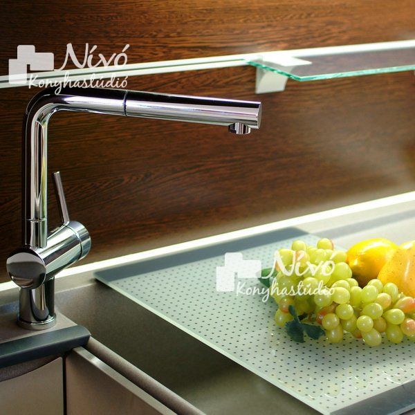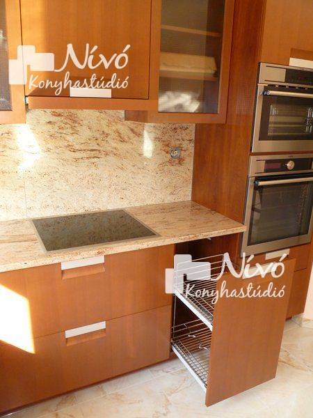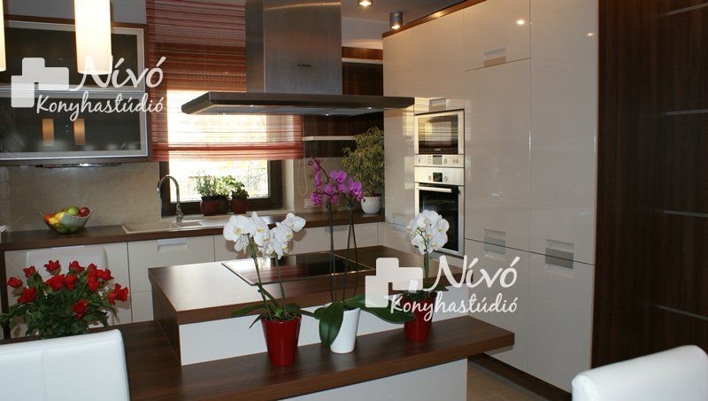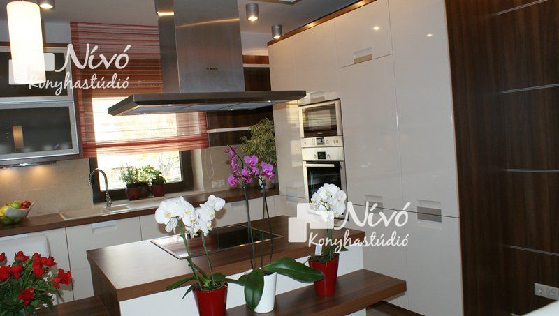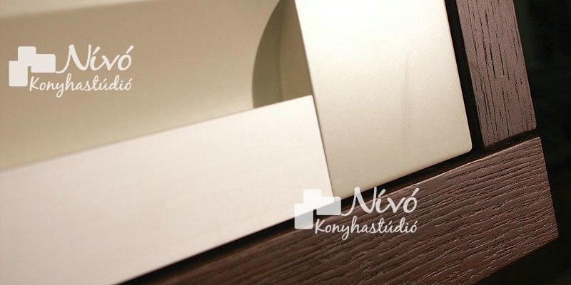 A beépített kiegészítők és vasalatok a legsokoldalúbb ajtónyitási és tárolási megoldásokat teszik lehetővé a konyhában.